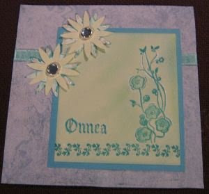 Mun piti kokeilla tällaista yhden värin korttia, mutta enhän mä osannut, kun piti tunkea kuitenkin taustaan sinistä ja toiset kukatkin vaaleina.